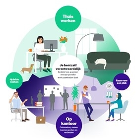 duidelijkheid, kaders en spelregels voor medewerkers om te kunnen werken in de nieuwe hybride werkomgeving (op kantoor, thuis en elders);