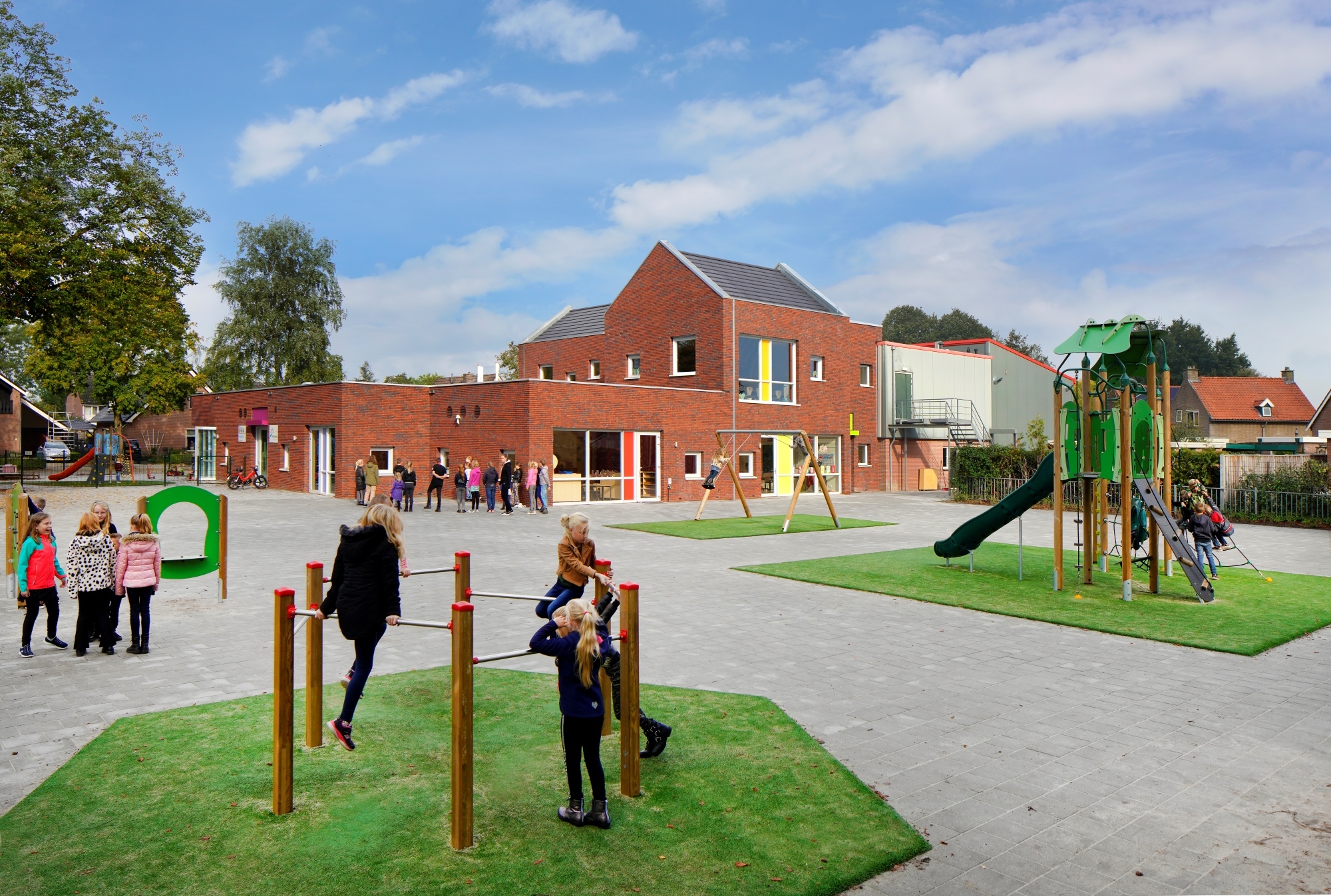 Op 27 januari werd het nieuwe gebouw in gebruik genomen. Het is weer een sociale en levendige plek centraal in het dorp. Alles komt samen in deze multifunctionele accommodatie: het dorpshuis, de school, de kinderopvang, de gymzaal en de bibliotheek.